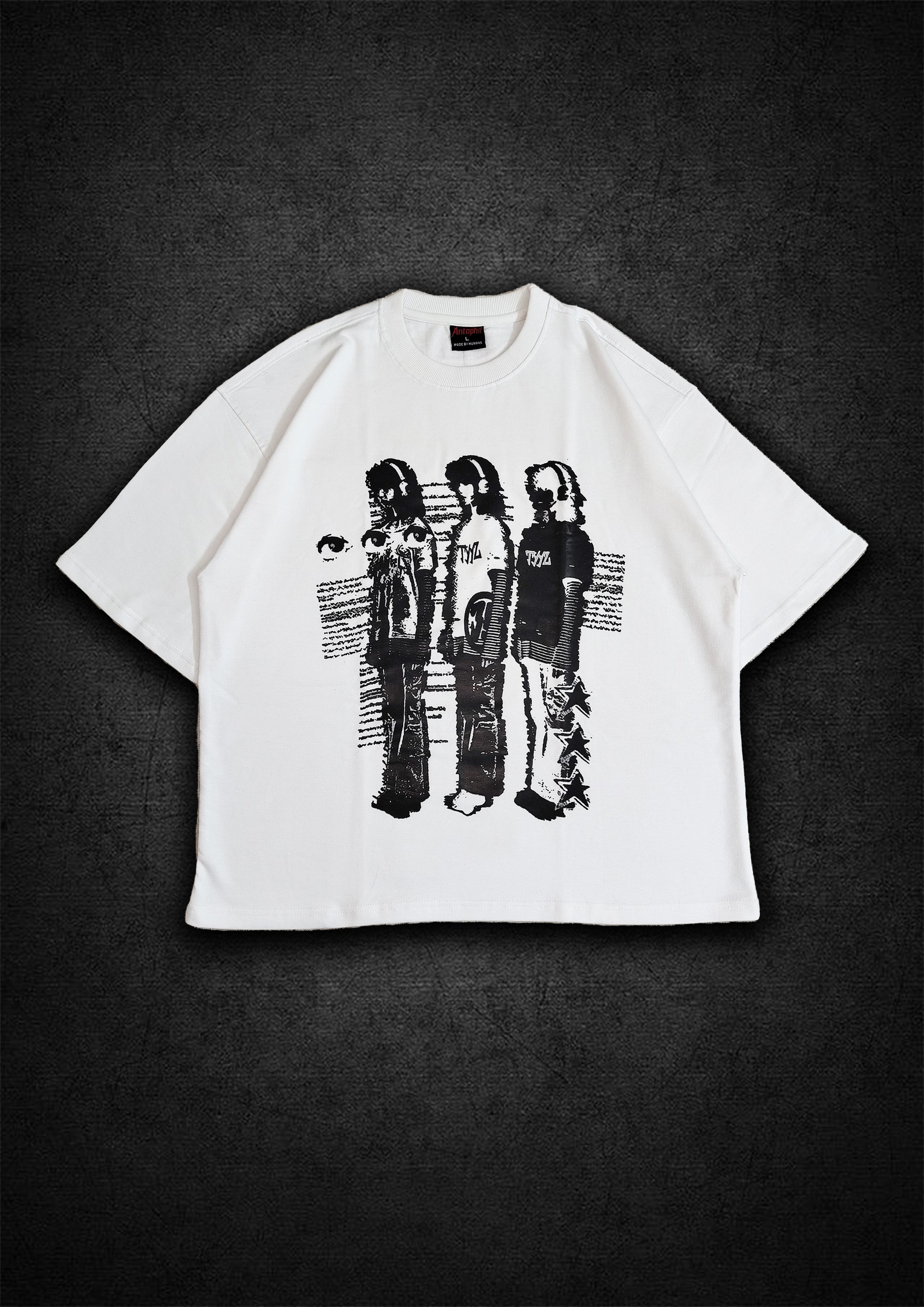 The Echoed Minds Tee redefines minimal street expression — a crisp white base meets distorted monochrome art, representing individuality lost and found. Designed for those who think differently, it blends raw emotion with everyday wearability. The structured oversized silhouette ensures comfort, while the print speaks louder than words.